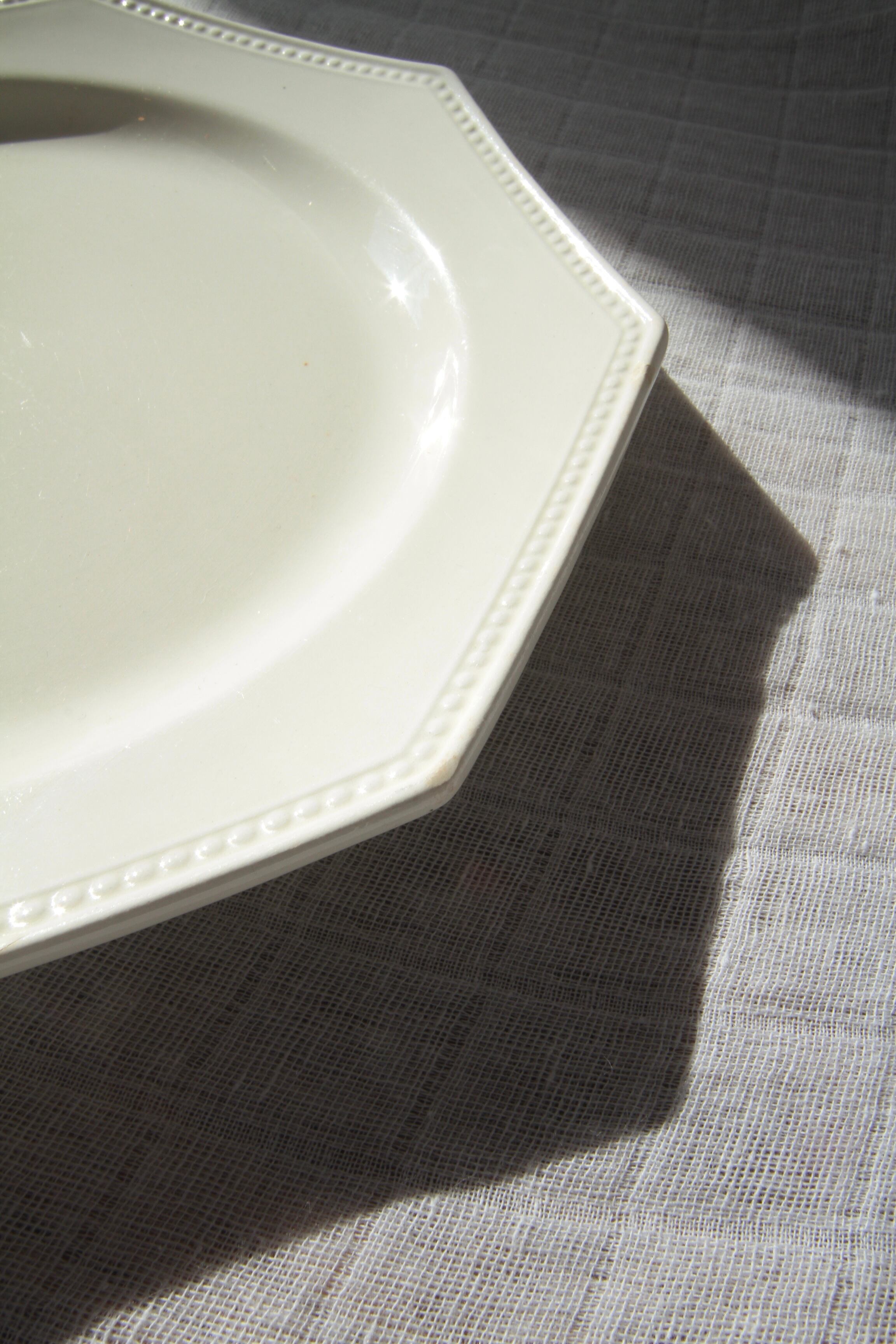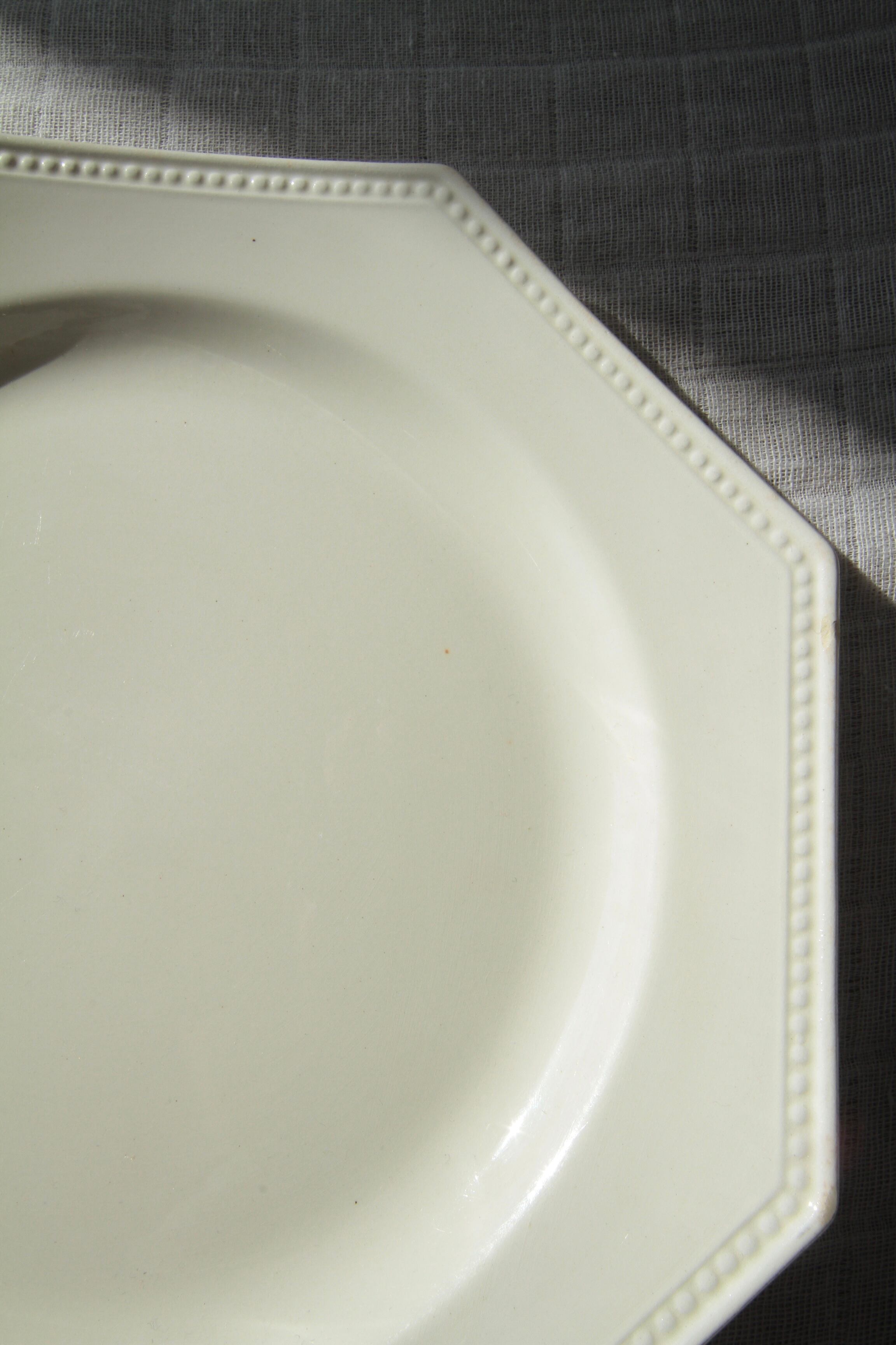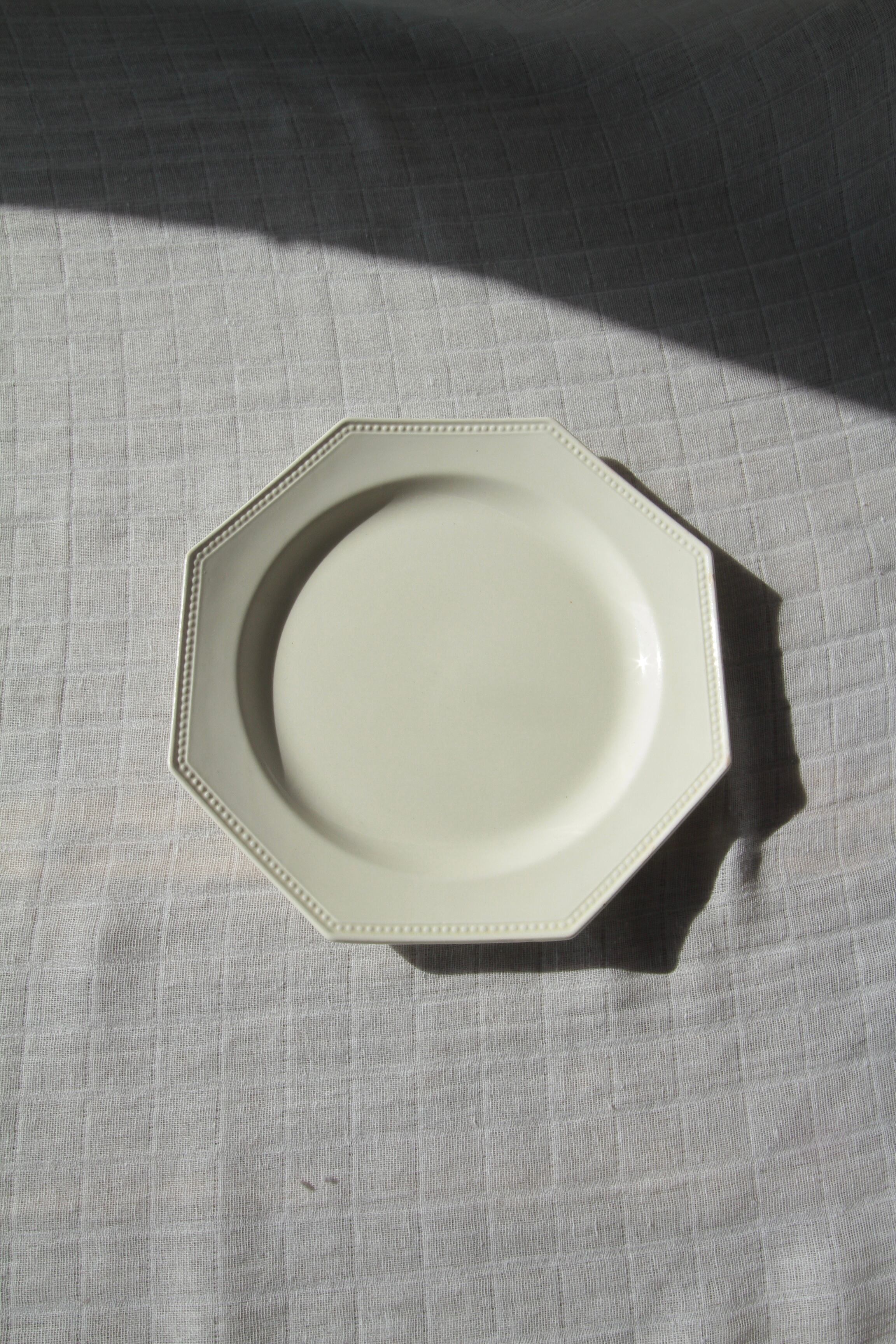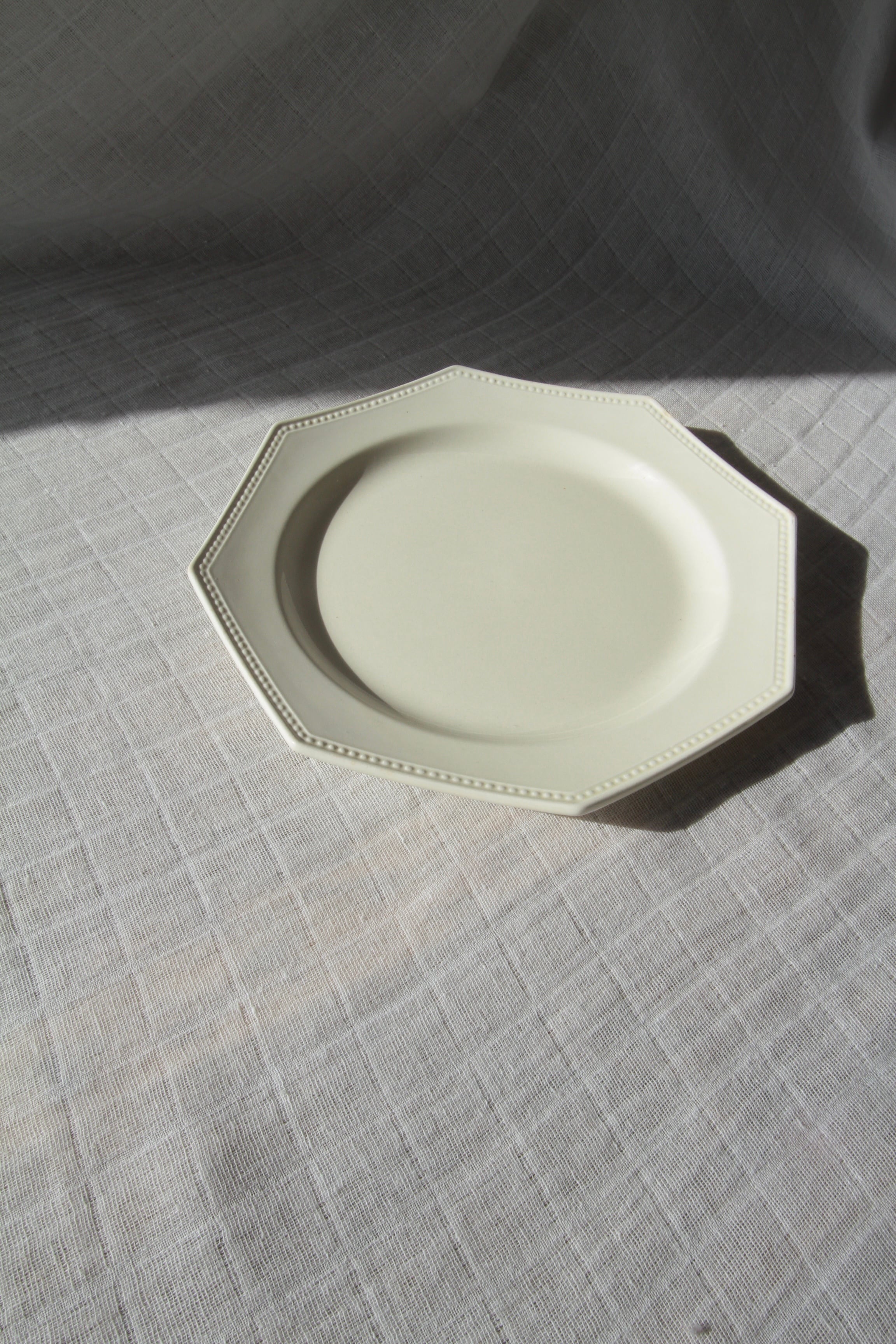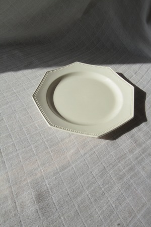 縁に連なるパール状の装飾と端正な八角形のフォルムが特徴的で美しく、アンティークプレートとして人気のあるシリーズです。